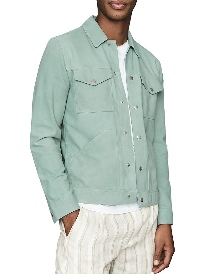 Reiss Sakura Suede Trucker Jacket In Peppermint Modesens